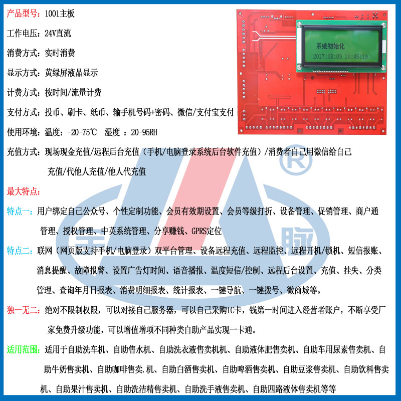 微信刷卡投币自助四路液体售卖机主控板,宇脉MCU单片机厂家,自主研发生产销售,联网多功能支持定制开发,真正拥有自己的研发团队。 提供免费升级功能,让您的设备不落后于时代。我们坚守着“只有客户好,公司才能发展得更好”的理念,只要您相信我们,我们愿与您共同成就更好的未来,共同成长,共同发展,携手打造一体化智能智慧社区。社区一卡通,让您拥有大数据管理!欢迎来电咨询:18520500709/400-1898-020