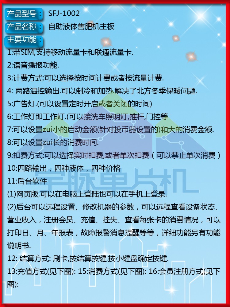 宇脉单片机厂家——联网投币刷卡自助液体售肥机主板